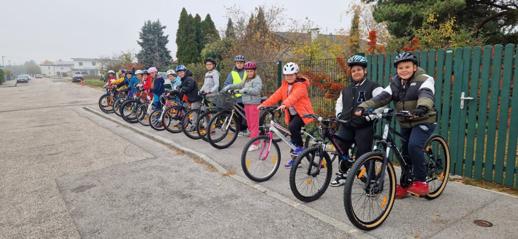 Heute war es endlich soweit. Wir durften, nach erfolgreich abgelegter theoretischer Radfahrprüfung im Oktober, endlich zur praktischen Radfahrprüfung bei Insp. Dungl antreten. Die erste Nervosität legte sich rasch und wir waren sehr konzentriert im Straßenverkehr mit unseren Rädern unterwegs. Wir mussten bei der Prüfungsfahrt unter Beweis stellen, dass wir uns bei einer Stop-Tafel, beim Rechtsabbiegen und Linksabbiegen verkehrssicher und nach den Verkehrsregeln richtig verhalten. Insp. Dungl war mit uns recht zufrieden und gratulierte uns allen zur bestanden praktischen Radfahrprüfung. Die Ausweise erhalten wir zirka in einer Woche per Post. Darauf freuen wir uns jetzt schon riesig.