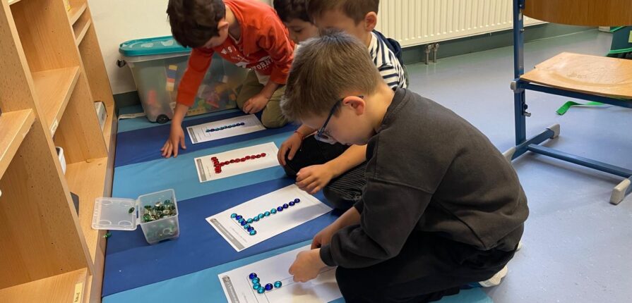 Wöchentlich erkunden die Kinder der Vorschulklasse einen Großbuchstaben des Alphabets. Dabei gibt es auch einen Buchstabentag, an dem die Kinder grob- sowie feinmotorische Übungen durchführen, um den Buchstaben kennenzulernen.