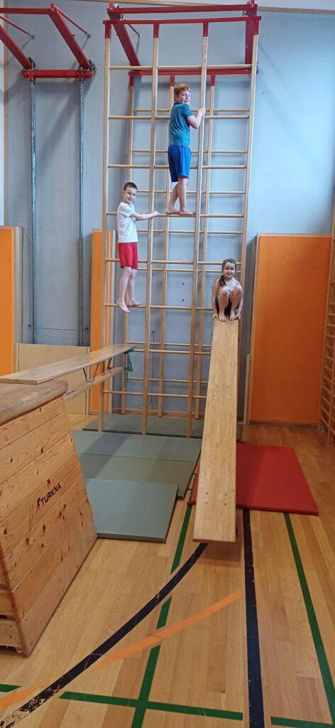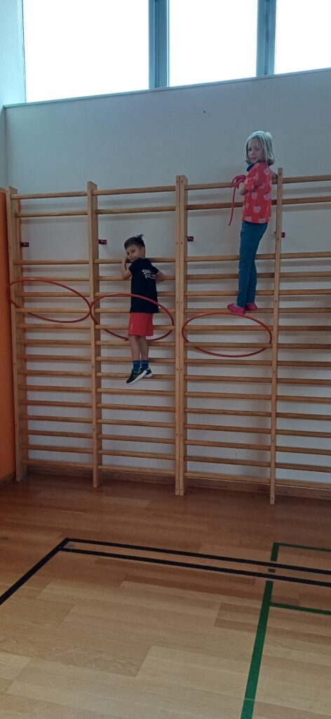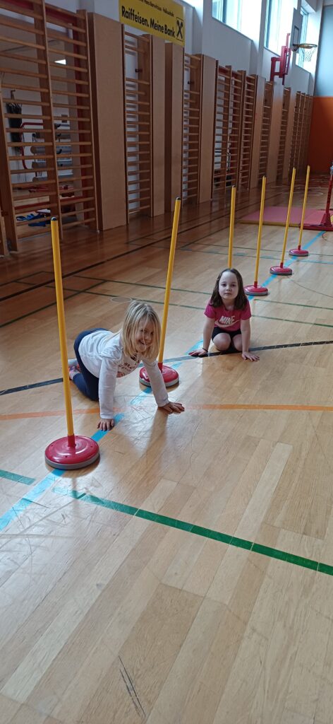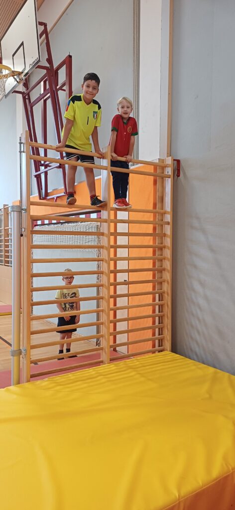 Die 1B und die 3B startet jeden Mittwoch gemeinsam in den Schultag. Es erwartet sie ein toller Bewegungsparcours, bei dem die Kinder klettern, rennen, miteinander üben, schaukeln und viel Spaß haben können.