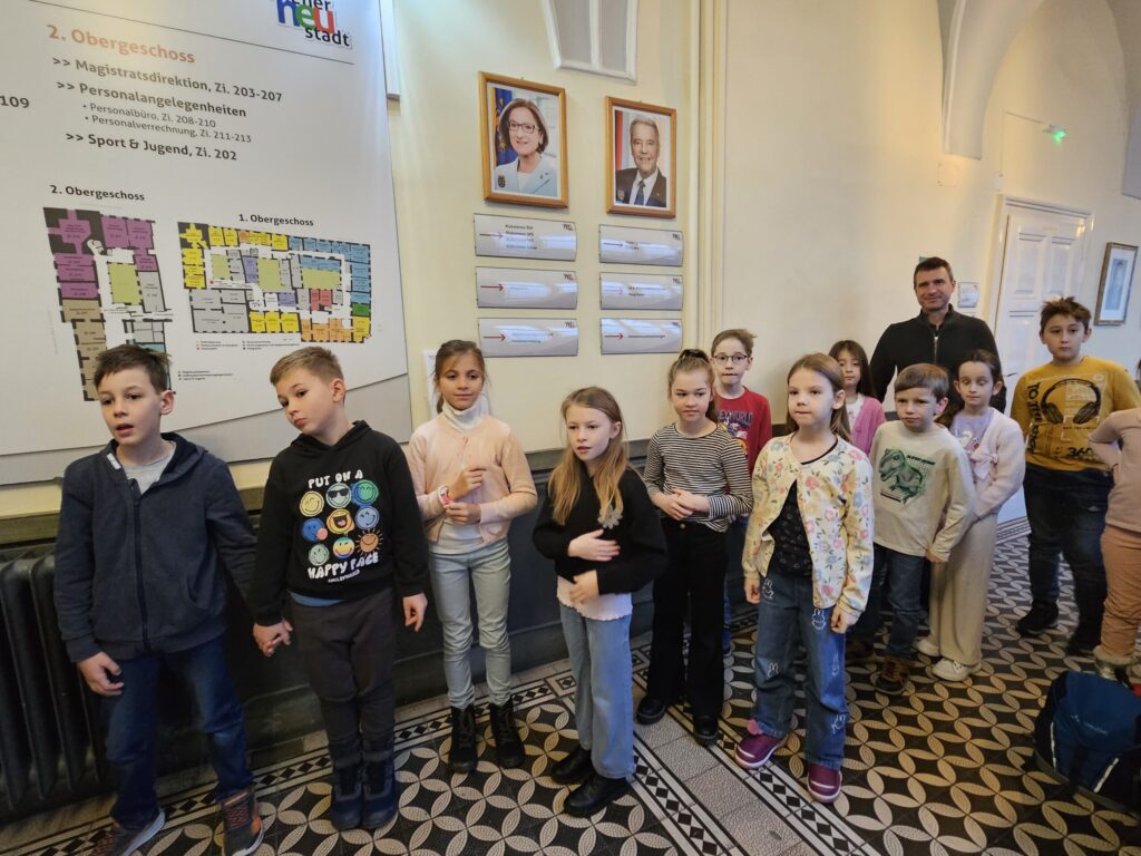 Besonders freuten wir uns, als auch der Herr Bürgermeister zu uns in den großen Sitzungssaal kam und sich für uns Zeit nahm. Wir teilten ihm einige unserer Gedanken und Wünsche für die Stadt mit, es wurden Fotos gemacht und wir erhielten sogar etwas Süßes.