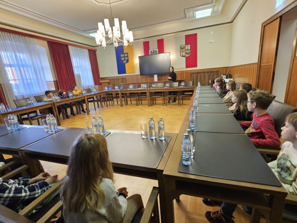 Bei einer sehr interessanten Führung von Frau Schmitner – Laszakovits durften wir das alte Rathaus ganz genau unter die Lupe nehmen. Dabei erfuhren wir einiges Interessantes und hörten konzentriert zu. So wurde der Sachunterricht richtig anschaulich für uns. Wir durften auch unsere Bürgermeister oder Bürgermeisterin wählen und entschieden uns ganz demokratisch für unsere KandidatInnen. War ja ganz einfach, schließlich haben wir schon viel über Demokratie gelernt.