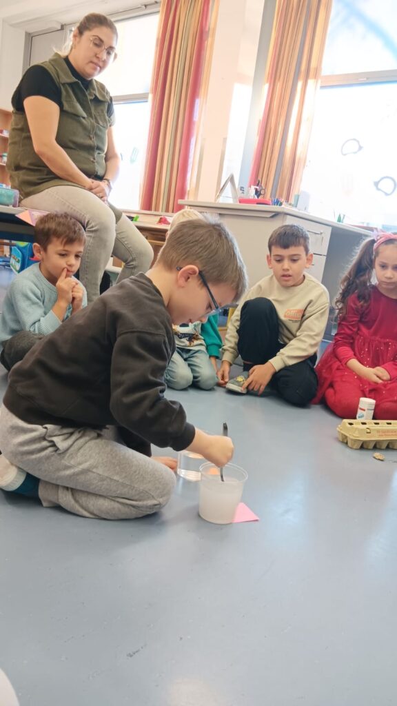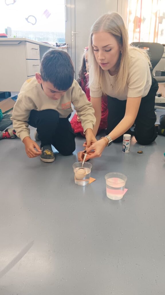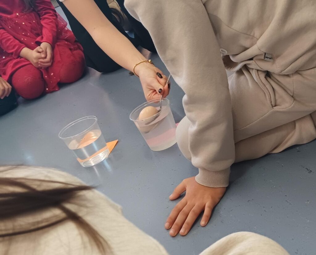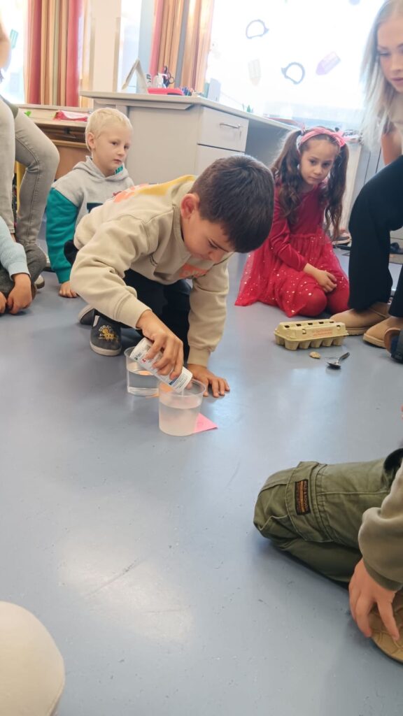 Die Kinder der Vorschulklasse durften heute mit Salz experimentieren. Sie waren ganz überrascht, dass ein Ei im Salzwasser schwimmt.