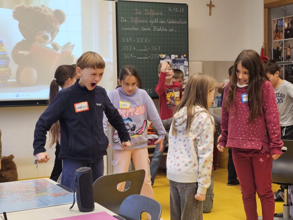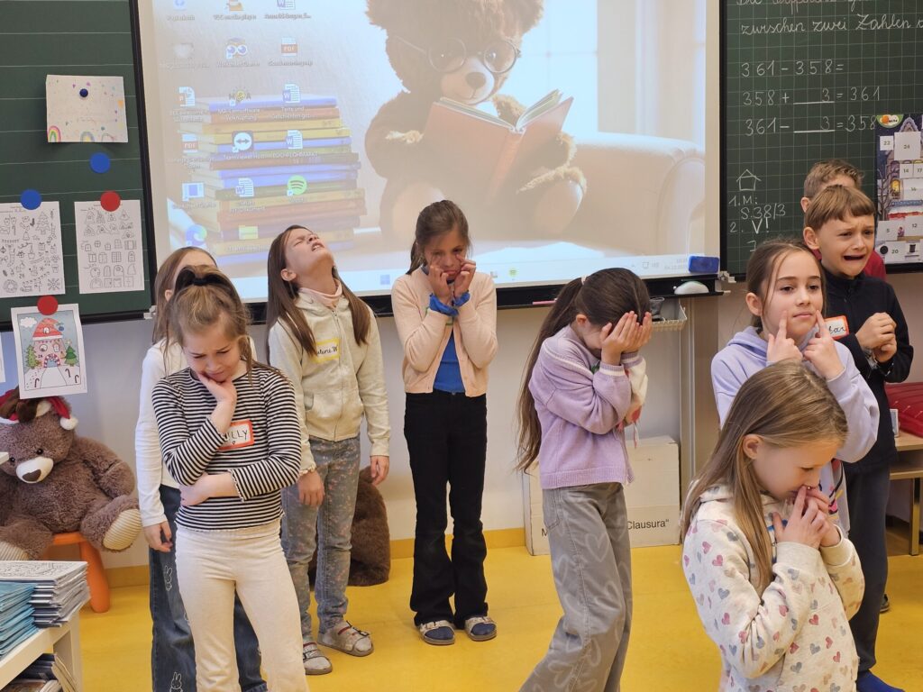 Unter diesem Motto durften wir einen Theaterworkshop mit Lisa erleben, der uns allen sehr gefallen hat. Wir spielten einige tolle Spiele, übten uns auch ohne Worte auszudrücken und erarbeiteten Szenen, die im alltäglichen SchülerInnenleben stattfinden könnten und auch zu Konflikten führen könnten. Die Zeit mit Lisa war nicht nur lehrreich, sondern auch sehr schön für uns. Danke!