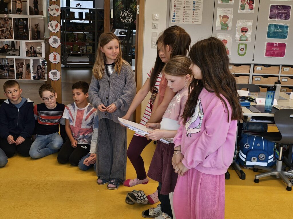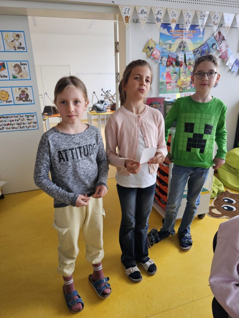 In Mathematik haben wir uns mit den Längenmaßen beschäftigt, im Sachunterricht passend zum Earth-Day mit dem Thema Müll. Unsere täglichen Ugotchi – Bewegungseinheiten machen uns viel Spaß. Auch mit unseren lieben Studentinnen arbeiten wir gerne. Ihr seht, es ist immer viel zu tun!