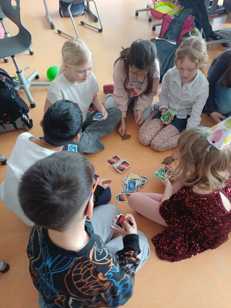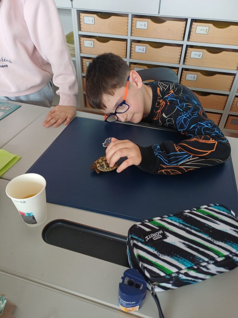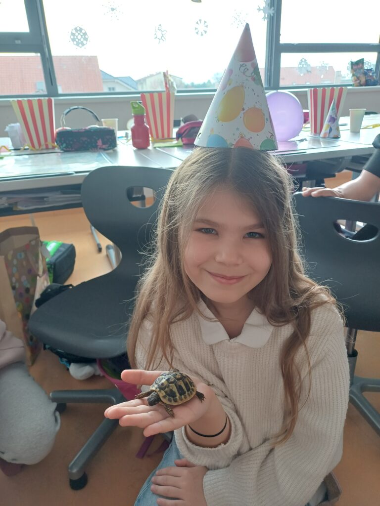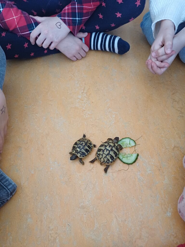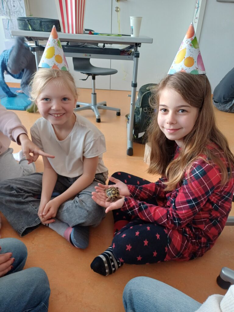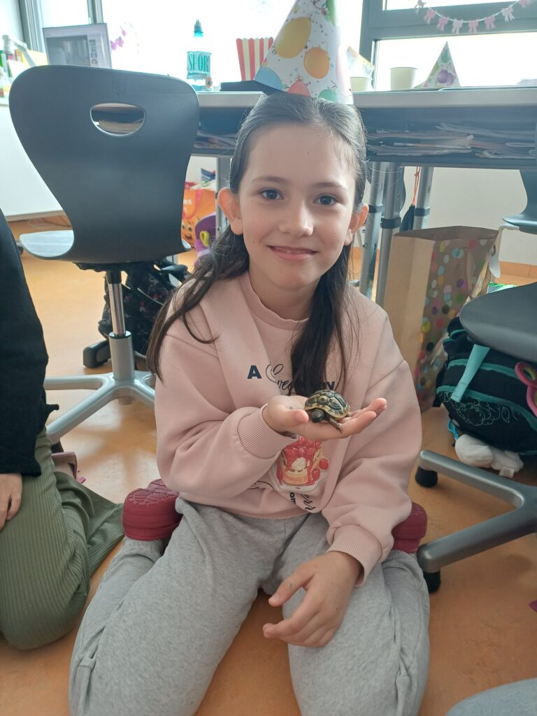 Letzte Woche durften die Kinder der 3B ganz besonderen Besuch begrüßen: Zwei Schildkröten waren zu Gast. Die Kinder konnten aus nächster Nähe beobachten und viel über ihre Lebensweise, Ernährung und ihren Lebensraum erfahren (Ein großes Dankeschön gilt unserer Schildkrötenexpertin 🙂 ).
