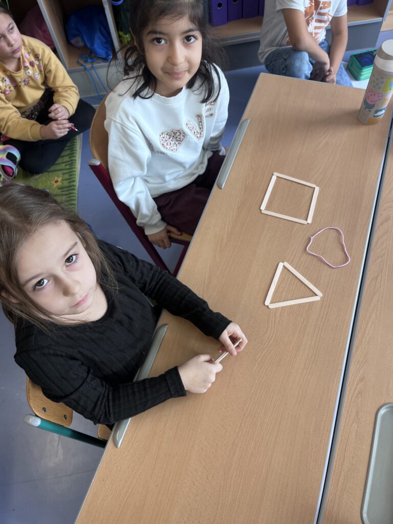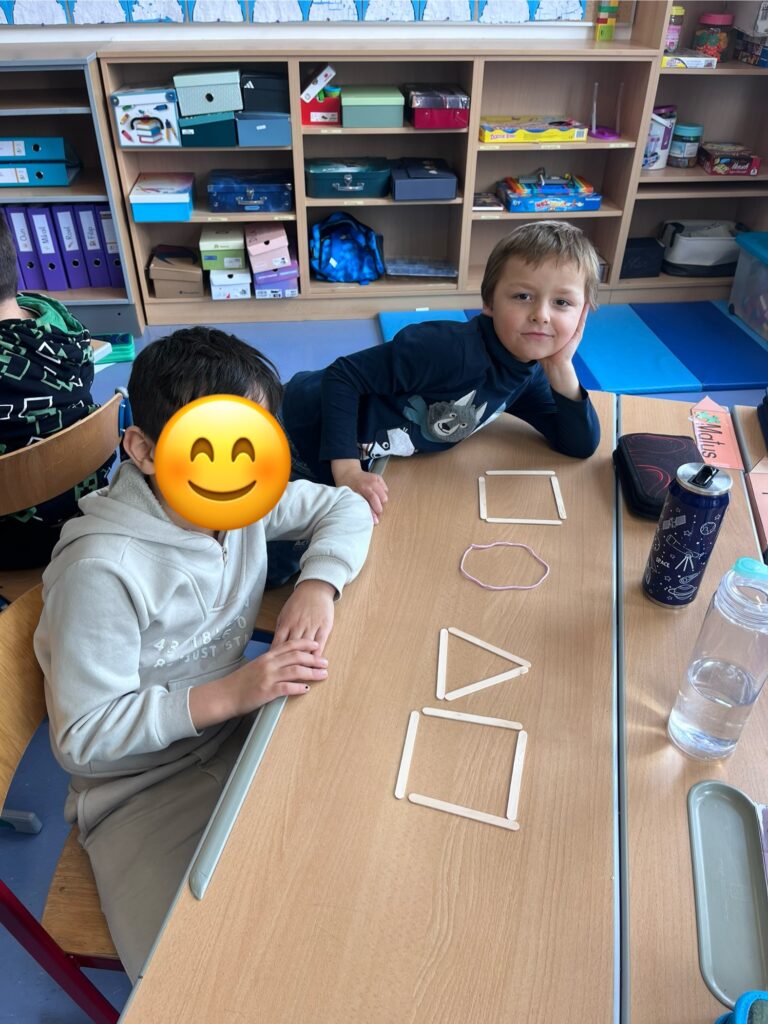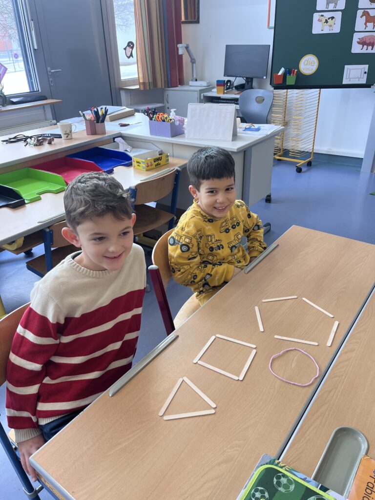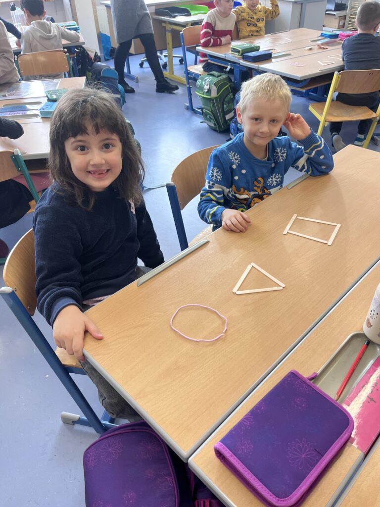 Die Kinder der Vorschulklasse kennen nun die Eigenschaften der Formen Viereck, Dreieck und Kreis!