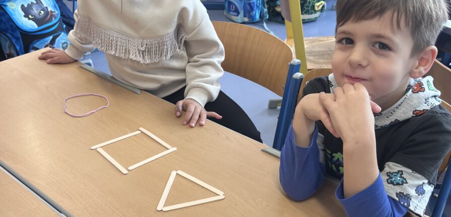 Die Kinder der Vorschulklasse kennen nun die Eigenschaften der Formen Viereck, Dreieck und Kreis!